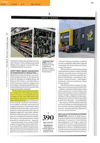 W najnowszym wydaniu magazynu Forbes ukazał się wywiad z Piotrem Koziną, Dyrektorem Zarządu Grupy PSB Handel S.A. W rozmowie poruszono m.in. unikatową strategię działania sieci PSB Mrówka, która pozwala skutecznie konkurować z największymi graczami na rynku budowlanym, mimo ich przewagi kapitałowej i marketingowej.
