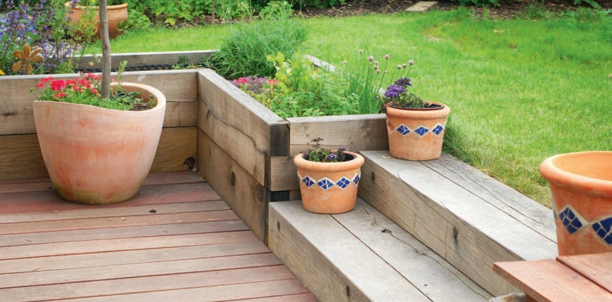 Jako okładzinę tarasu możemy wykorzystać gatunki iglaste, które są dużo trwalsze od liściastych. Sprawdzą się np. deski świerkowe, sosnowe czy modrzewiowe. Warto postawić też na zaimpregnowane lub zaolejowane deski dębowe lub jesionowe. Niestety decydując się na takie wykończenie, musimy liczyć się z koniecznością jego konserwacji co 2-3 lata. Bardziej wytrzymałe, twarde i odporne na zmienne warunki atmosferyczne jest drewno modyfikowane termicznie, czyli thermodrewno. Jednak najlepszym wyborem – niestety najdroższym – będzie drewno egzotyczne, np. tek, bangkirai, kempas, massaranduba, sapeli, cedr, eukapiptus. Co ważne, nie trzeba go ani wykańczać, ani impregnować. Deski układane na tarasie nie powinny być szersze niż 16 cm, a ich grubość wynosi 1,8--3,8 cm. Zastosujmy takie, które mają ryflowaną powierzchnię. Nie tylko woda będzie po nich szybciej spływała, ale także są bardziej odporne na odkształcenia oraz trudniej się na nich poślizgnąć. Desek tarasowych nie układamy bezpośrednio na płycie betonowej. Montaż drewnianej nawierzchni wymaga użycia legarów – podłużnych drewnianych belek. Legary ustawiamy co 30-60 cm na plastikowych klinach lub innego rodzaju podkładkach, dzięki czemu oddzielimy je od betonu i zapewnimy podłodze odpowiedni poziom oraz spadek. Deski do legarów mocujemy za pomocą wkrętów. Warto wybrać samonawiercające wkręty nierdzewne. Oczywiście przed montażem nawierzchni drewnianej płytę betonową należy zabezpieczyć hydroizolacją z papy lub masy bitumicznej. Niezbędne jest także pozostawienie między ścianą domu a deskami ok. 1-centymetrowej szczeliny.