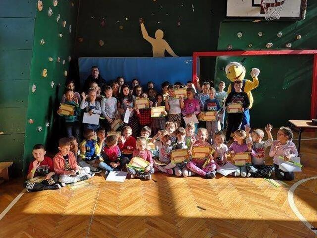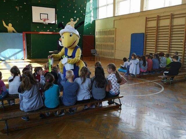 Uczniowie aktywnie brali udział w zajęciach, chętnie dzielili się swoimi doświadczeniami i spostrzeżeniami z zakresu bezpieczeństwa w ruchu drogowym. Łącznie w spotkaniu wzięło udział 46 uczniów z klas 1-3. Każde z dzieci otrzymało od naszej Mrówki odblaskową opaskę oraz plan lekcji.