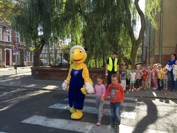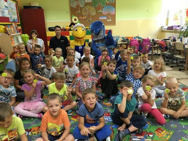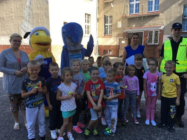 15 września nasza Mrówka wraz z Delfinem i przedstawicielem Policji spotkała się z uczniami ze Szkoły Podstawowej nr 3 w Chełmży i Szkoły Podstawowej w Grzywnie. Razem uczyliśmy się zasad ruchu drogowego i bezpiecznego zachowania na drodze. Mrówka wręczyła dzieciom odblaski i słodycze. Dzieci w Szkole Podstawowej w Grzywnie przywitały nas wierszykiem o zasadach przechodzenia przez jezdnię byliśmy pod wrażeniem.