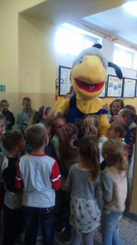Na spotkanie dotarł też nasz ,,Mrówkowy” pluszak, który wręczył najmłodszym uczniom odblaski bezpieczeństwa.