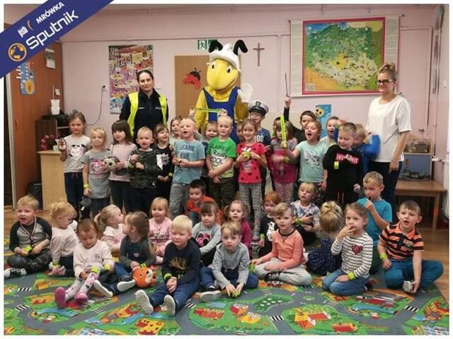 W ramach akcji Bezpieczna droga do szkoły firma Sputnik prowadząca sklep Mrówka w Starogardzie Gdańskim wraz z panią Policjant z Komendy Powiatowej w Starogardzie Gdańskim odwiedziła przedszkolaki w Szpęgawsku.