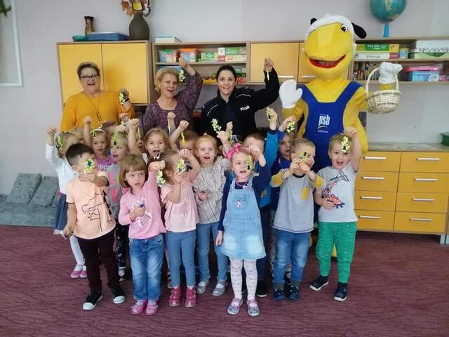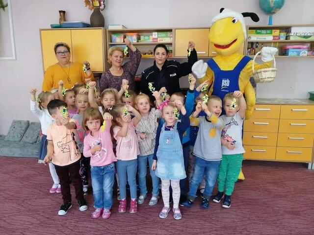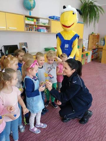 Wspólnie z Policjantami mieli okazję uświadomić najmłodszym pieszym jak poprawnie przechodzić przez ulicę w miejscach do tego przeznaczonych. W sumie prawie tysiąc dzieci z powiatu zostanie wyposażonych w odblaskowe znaczniki do poprawy widoczności na drodze.