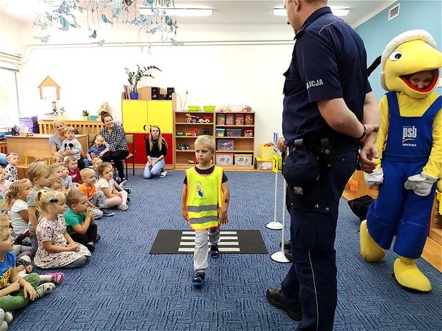 W ramach akcji dzieci pogłębiły swoją wiedzę na temat bezpiecznego poruszania się w drodze do przedszkola.