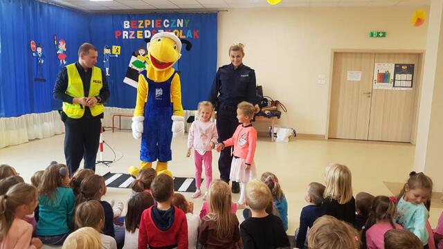 Wszystkie dzieci były zachwycone wizytą policjantów oraz maskotki Mrówki w przedszkolu, a uśmiech na ich twarzach zagościł na długo.