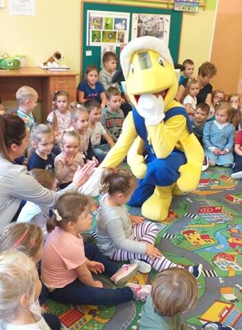 Przedszkolaki w trakcie pogadanki brały udział w quizie. Otrzymali rysunki ptaków zimujących w Polsce, karmniki, pożywienie dla nich oraz upominki.