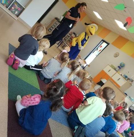 W spotkaniu uczestniczyła policjantka, która przypomniała dzieciom zasady bezpiecznego poruszania się po drogach.