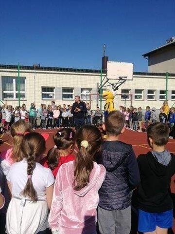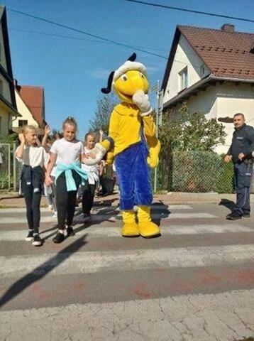 Policjanci przypomnieli zasady bezpiecznego poruszania się po drodze, a uczniowie otrzymali odblaski, kamizelki oraz słodkości od Mrówki.
