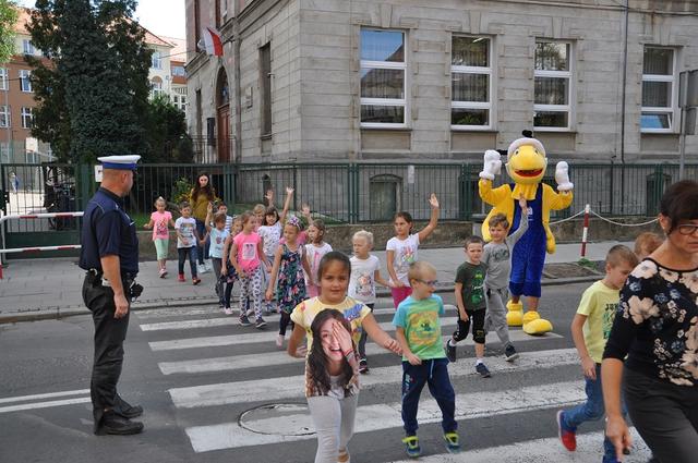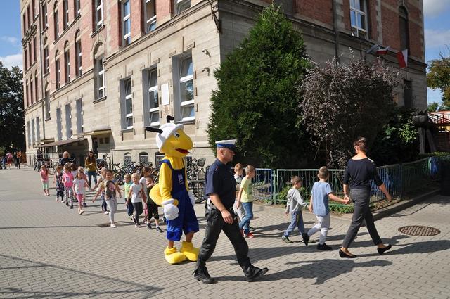 W ramach przeprowadzonej akcji "Bezpieczna Droga do Szkoły", 13 września 2019 r., policjanci przypomnieli ponad siedemdziesięciu uczniom podstawowe zasady bezpieczeństwa.
