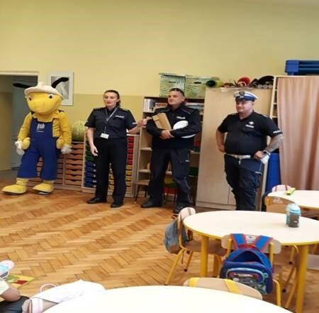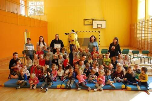 Każde dziecko w szkole otrzymało od nas drobny upominek: plan lekcji i odblaski, przedszkolaki dostały kamizelki oraz słodycze krówki-Mrówki.