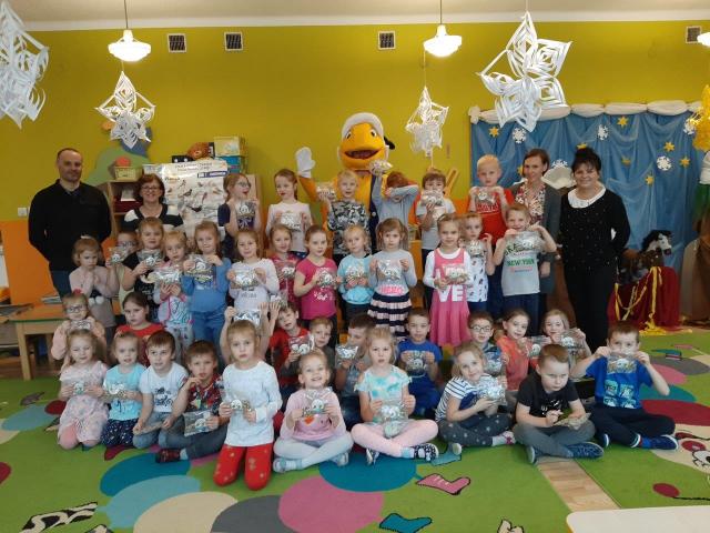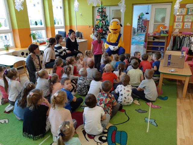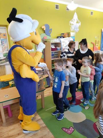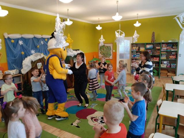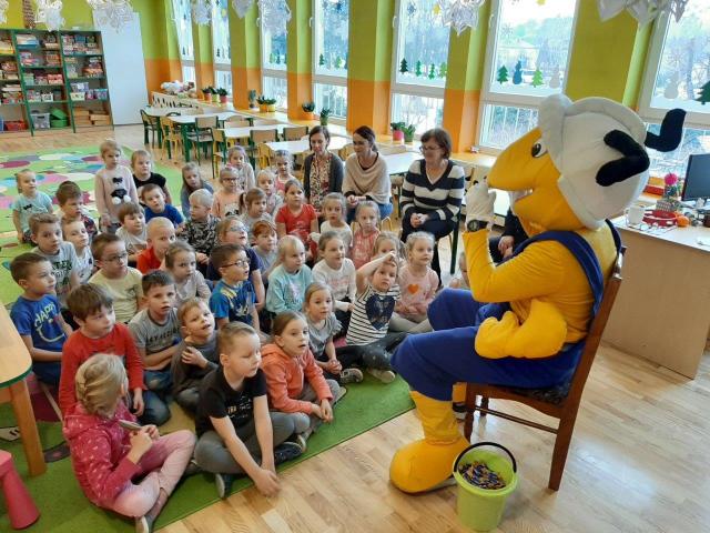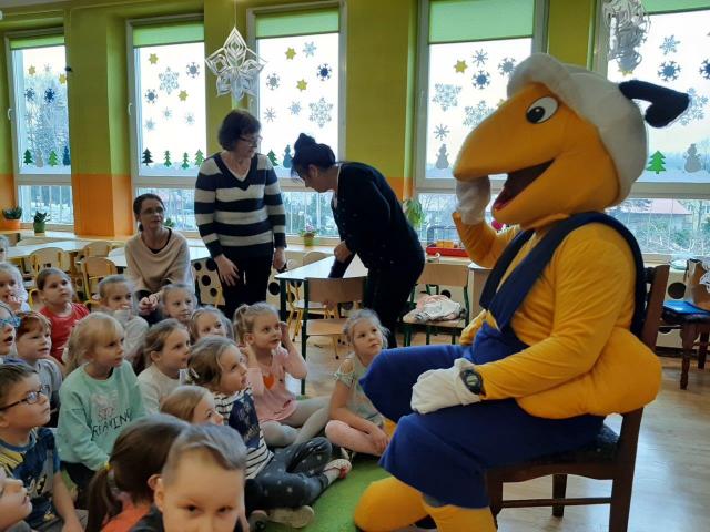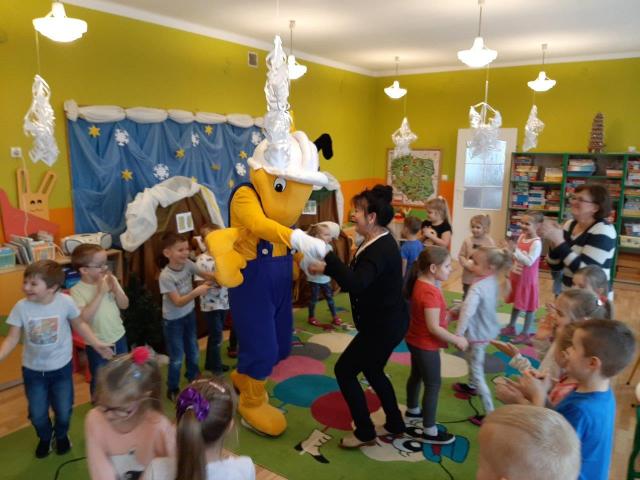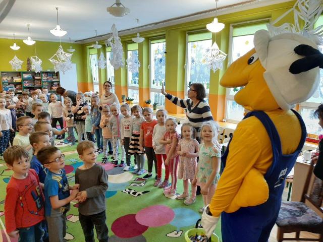 Mrówka z Błażowej odwiedziła dzieci w przedszkolu publicznym w ramach akcji "Dokarmianie ptaków". Przedszkolaki pochwaliły się wiedzą na temat dokarmiania ptaszków w zimie. Otrzymały od Mrówki nasionka firmy Planta oraz słodycze. Były zagadki, tańce i zabawy.