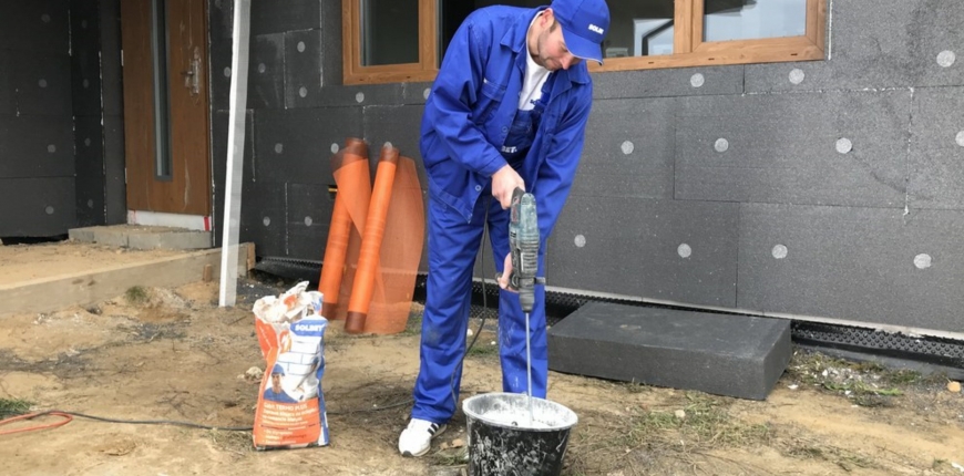 Przed rozpoczęciem prac ociepleniowych niezbędna jest staranna ocena stanu technicznego podłoża. Powinno być ono suche, nośne, oczyszczone z kurzu, brudu i innych zanieczyszczeń mogących osłabić przyczepność zaprawy klejącej. Mury wykonane z materiałów chłonnych wymagają zagruntowania. W tym celu można użyć preparatu SOLBET Akryl Plus 12.2. Wyrówna on chłonność podłoża i stworzy właściwe warunki do wiązania zaprawy klejącej. Prace termoizolacyjne można rozpocząć po wyschnięciu warstwy gruntującej, czyli po ok. 2-4 godzinach, w zależności od temperatury i wilgotności powietrza.