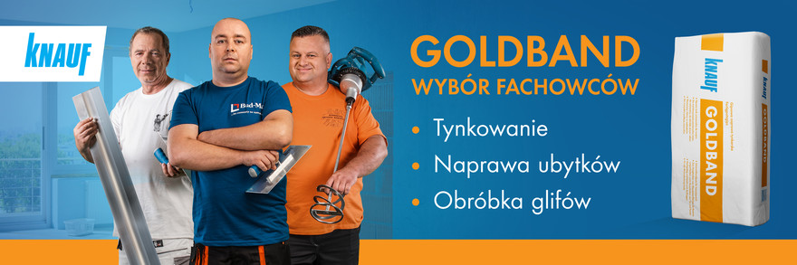 Przede wszystkim można go położyć na każdym podłożu mineralnym, bezpośrednio na cegle, pustaku, czy też starym tynku cementowym, który bardzo często spotyka się w remontowanych domach. Oczywiście podłoże należy wcześniej zagruntować środkiem gruntującym Tiefengrund lub Universalgrund. GOLDBAND szybko wiąże i wysycha, dzięki czemu jednego dnia można wstawić nowe okna i od razu obrobić glify. Wykonawcy lubią ten tynk także za to, że łatwo się rozrabia na zaprawę o jednolitej konsystencji oraz nakłada bez większego wysiłku. W efekcie końcowym uzyskuje się gładkie powierzchnie, które niekoniecznie muszą być wygładzane dodatkowo gładzią gipsową.